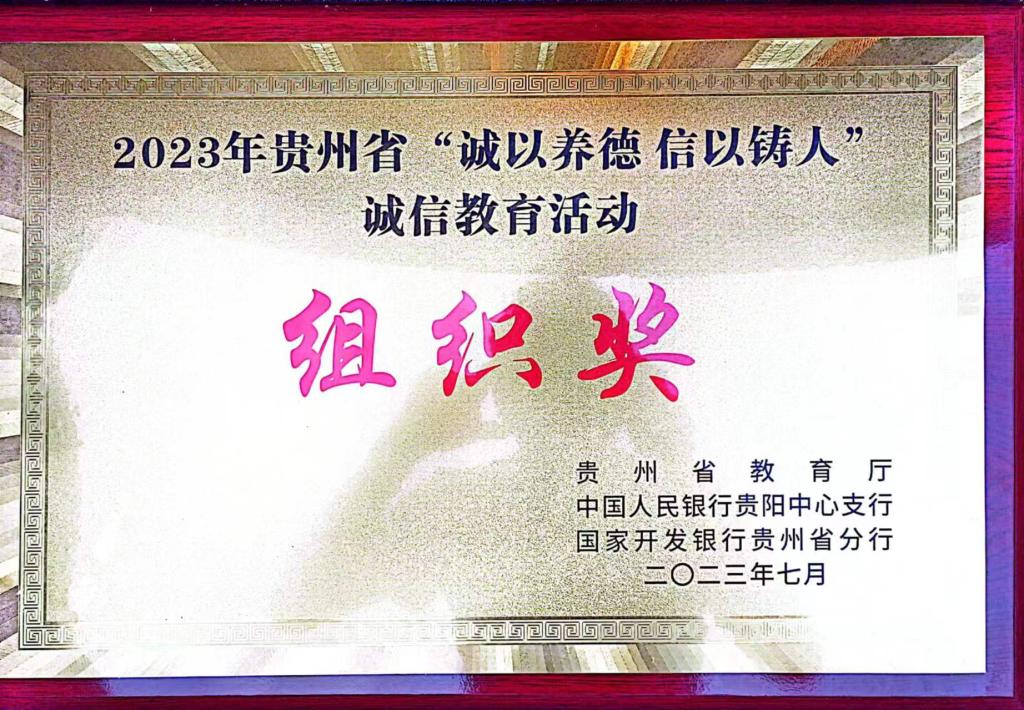 7月7日,2023年贵州省“诚以养德 信以铸人”诚信教育活动决赛暨颁奖仪式在贵州大学举行,安顺学院荣获诚信教育活动组织奖。