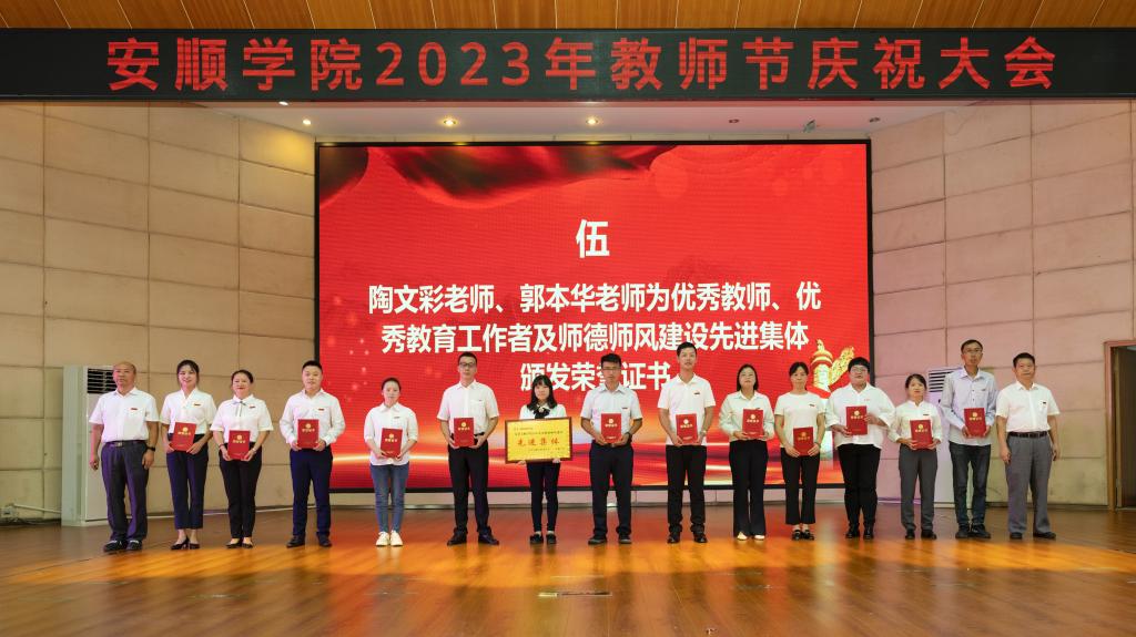 会上,安顺学院党委副书记陶文彩宣读《中共安顺学院委员会 安顺学院关于表彰2023年度“优秀教师”“优秀教育工作者”“师德师风建设先进集体”的决定》。安顺学院党委委员、副校长郭本华宣读30年教龄教师名单及2022年以来光荣退休教师名单。安顺学院党委委员、纪委书记、监察专员蔡红英宣读2023年新入职教师名单。