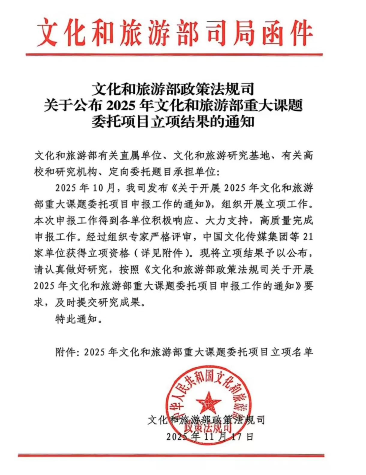 此次课题立项是文化和旅游部对我校科研水平与研究方向的高度认可。我校将以此次立项为契机,支持石培华团队高质量完成研究任务,持续深化文旅融合领域学术研究与成果转化,为我校建设文旅融通、特色鲜明的高水平应用型大学作出更大贡献。(文:宣传部 蒋欣原)