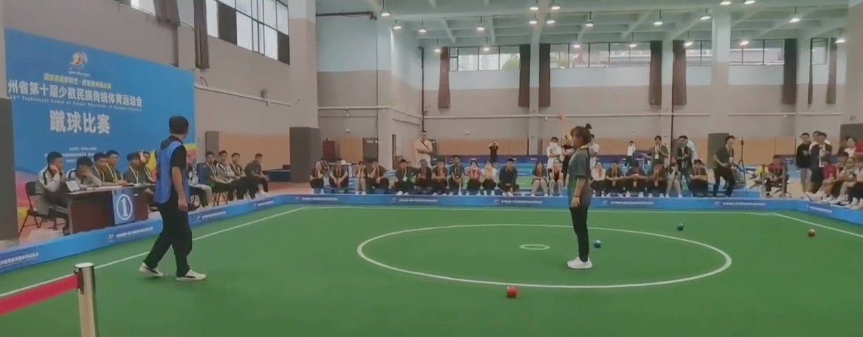 6月12日,安顺学院体育学院2019级体育教育专业学生周丽敏在贵州省第十届少数民族体育运动会蹴球比赛混双项目中斩获安顺代表团首金。