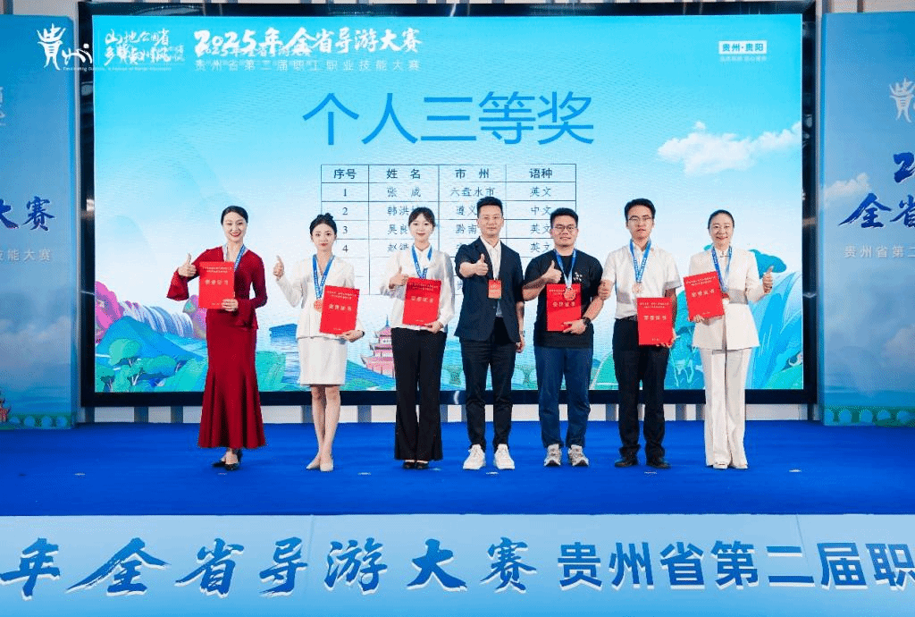 7月2日,由贵州省文化和旅游厅等五部门联合主办的2025年全省导游大赛在贵阳圆满落幕。安顺学院外国语学院2021级国际导游班学生赵锴嫦凭借扎实的专业素养和出色的临场发挥,在全省100多名参赛选手中脱颖而出,以第7名的成绩荣获三等奖,充分展现了新时代外语导游人才的风采。
