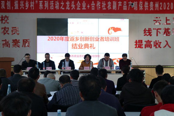2020年11月2日至15日,由安顺学院承办的2020年返乡创新创业者培训工作圆满结束,来自安顺市的50名现代职业农民参加了为期15天的培训。安顺学院副校长张来、农学院党委书记喻辉、农学院副院长张玉波,安顺市农广校校长罗军英、副校长袁华杨、副校长吴长春,本次培训班班主任、部分授课教师以及来自安顺市各县区50名学员参加了结业典礼。