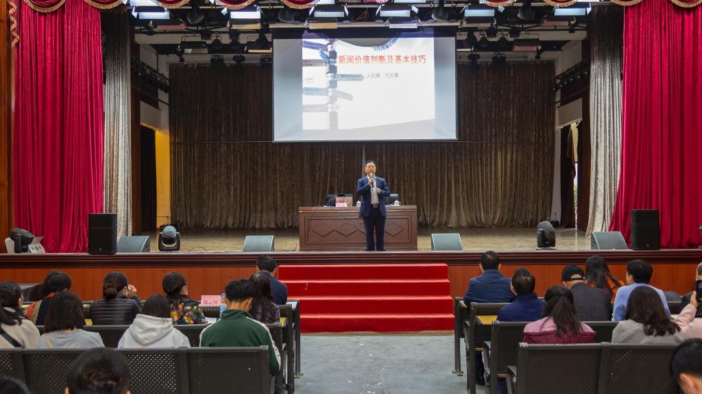 11月13日上午,安顺学院召开党委理论学习中心组(扩大)学习专题报告会,邀请人民网贵州频道副总编、网络舆情分析师,贵州省直机关目标绩效考核创新奖专家评委代后攀作题为《新闻传播价值及基本判断技巧 、网络舆情生态及基本应对技巧》的专题报告。学校领导,全校副科级以上干部,党政办、纪委、组织部、宣传部、统战部、学生工作部、对外交流合作处、教师工作处、教务处、团委、科研处、学生资助管理中心全体人员,思政课教师、辅导员、班主任,大学生记者团全体成员参加会议。报告会由陶文彩副书记主持。
