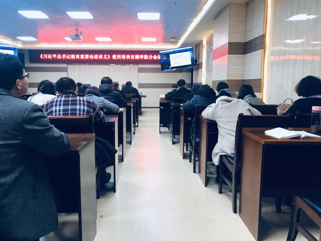 2020年11月23日早上8:30,由教育部举办,高等教育出版社承办的《习近平总书记教育重要论述讲义》(以下简称《讲义》)使用培训在北京主会场举行开班式,教育部党组成员、副部长郑富芝出席开班式并讲话。安顺学院100余名教师在特教大楼七楼会议室参与培训。