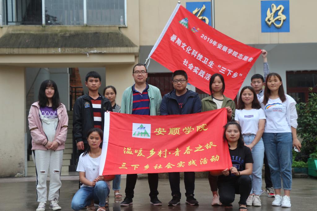 安顺学院辅导员崔亚飞(左三)带领学生赴农村开展“三下乡”活动