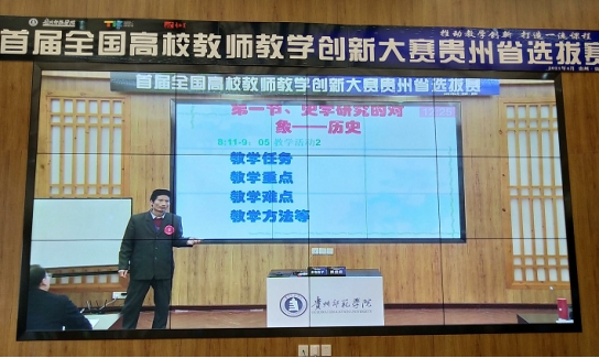 2021年4月17日至18日,由贵州省教育厅主办,贵州师范学院、超星集团(贵州)承办的高校教师教学创新大赛省级选拔赛在贵州师范学院举行。全省24所参赛院校67名高校教师参加了省级选拔赛。安顺学院马克思主义学院的张信通老师、经管学院的曹跃杰老师和艺术学院的胡婷娜老师代表学校参加了省赛。