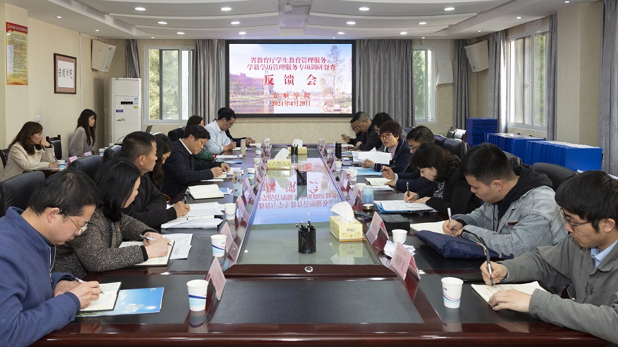 下午,调研督查组经合议后在安顺学院行政楼二楼会议室召开反馈会。令狐彩桃就安顺学院学生教育管理服务和学籍学历管理服务工作开展情况、亮点、成效给予了充分肯定,就存在的问题和不足提出了意见和建议。陈云坤代表学校对调研督查组的认真细致工作和督查意见建议致以衷心感谢并表示:完全接受调研督查组提出的意见建议,将认真举一反三、深入细致梳理,破立结合、全面加强改进,围绕立德树人、坚持三全育人,加强创新、确保整改到位。