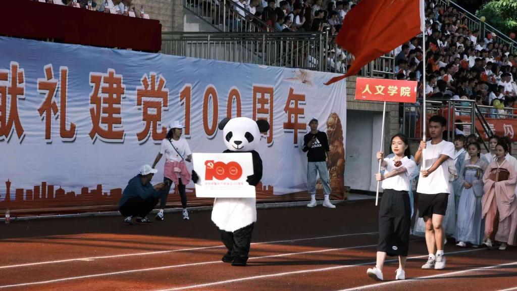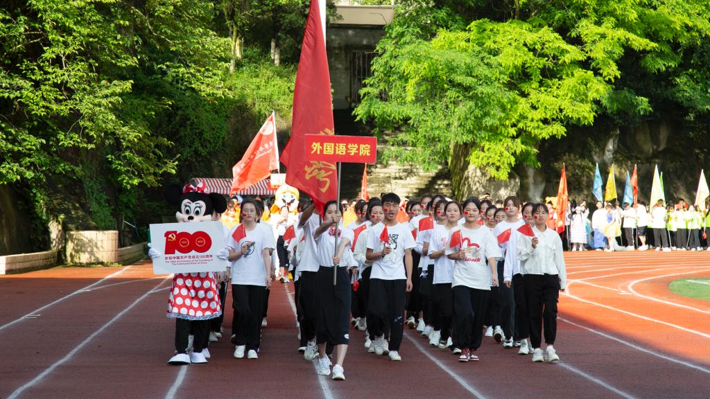 热情大方、活力四射的《啦啦操》表演和蕴含着传统体育文化丰富底蕴的《健身气功八段锦》表演点燃全场。最后,全校唱响《没有共产党就没有新中国》,以一句句歌词诠释青年学子的爱国之心,共同抒发爱国之情。