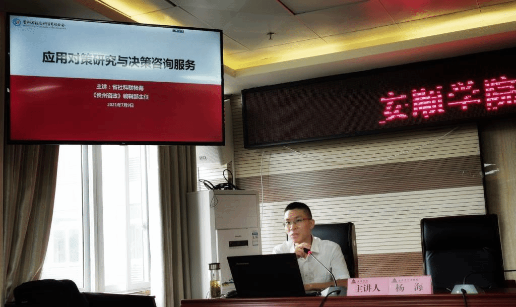 贵州省社科联学术办副主任、《贵州咨政》编辑部主任杨海到我校为科研人员进行培训