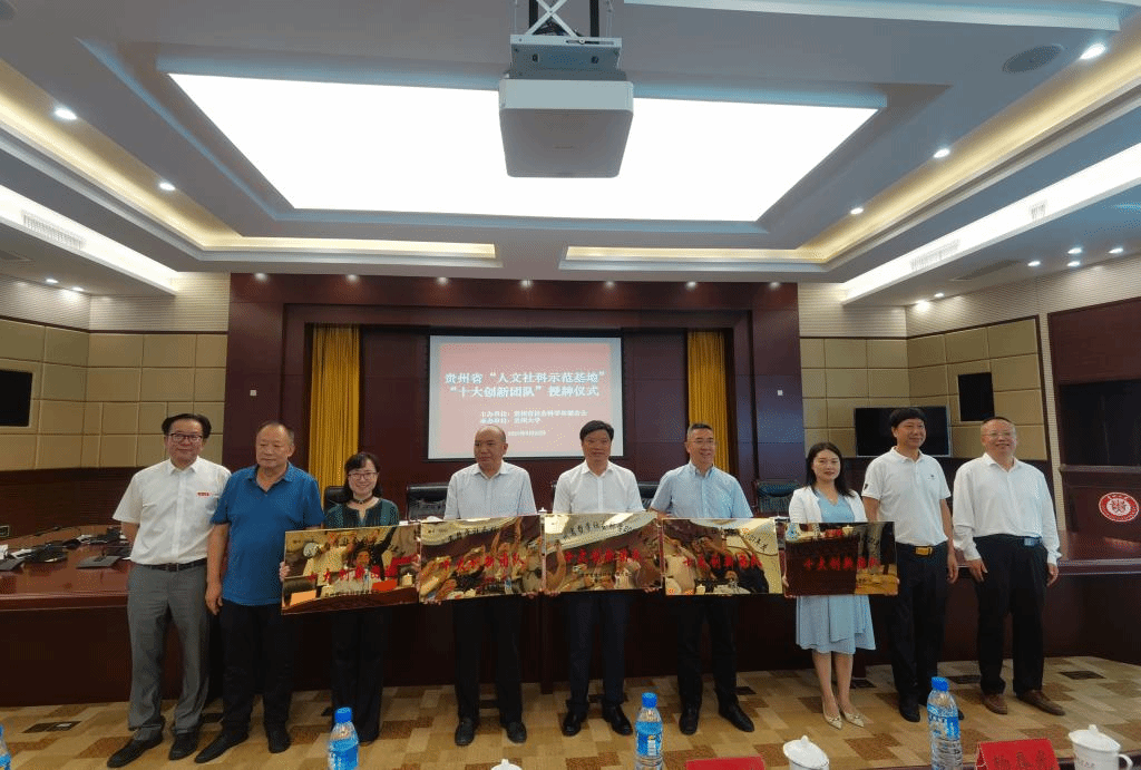 9月23日,由省社科联、省教育厅联合主办,贵州大学承办的贵州省哲学社会科学2021年度“十大创新团队”、“贵州省人文社科示范基地”授牌仪式暨现场推进会在贵州大学召开。省社科联党组书记、副主席包御琨,贵州大学党委书记李建军、贵州大学副校长漆思等领导出席会议。省社科联党组成员、秘书长刘丰泉主持会议。来自“十大创新团队”、“贵州省人文社科示范基地”的负责人、高校社科联(科研管理部门)50余人参加会议。会上,李建军书记代表贵州大学致辞,包御琨书记作了讲话。