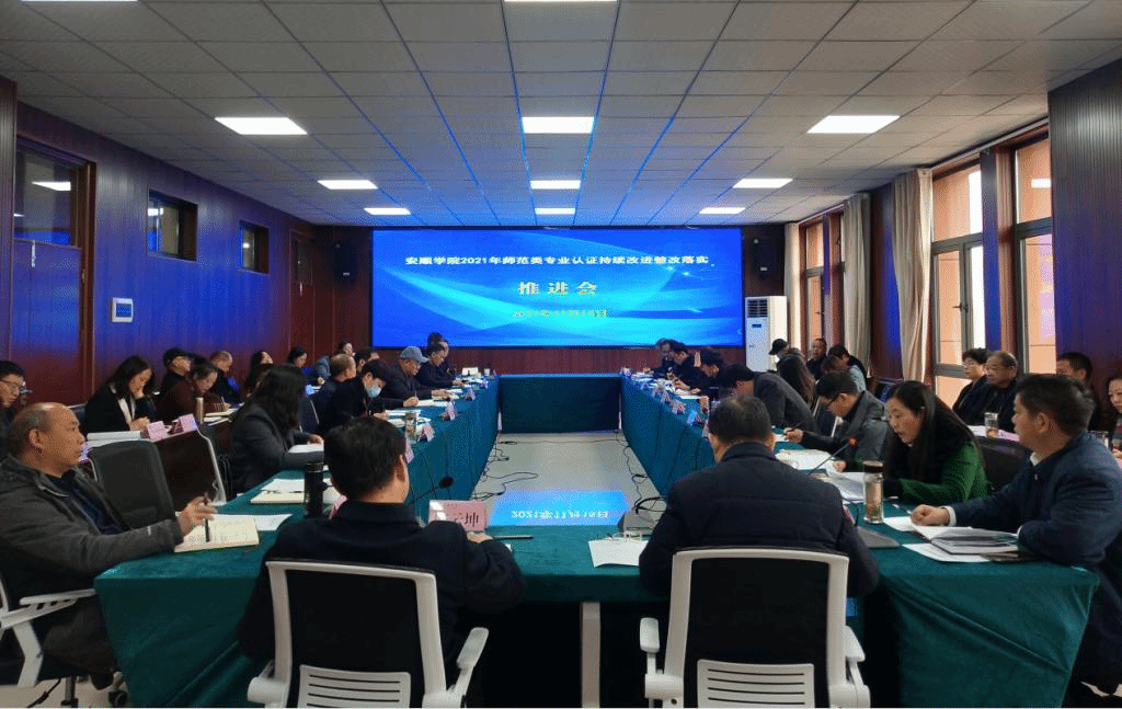 2021年11月15日上午,安顺学院2021年师范类专业认证持续改进整改落实推进会在安道楼505会议室召开。安顺学院党委书记罗荣彬、安顺学院校长陈云坤、党委副书记陶文彩、学校副校长郭本华、纪委书记蔡红英、学校副校长韦英、学校副校长张来、学校副校长殷红敏出席会议,各相关职能部门负责人、各举办有师范类专业的二级党委书记、院长以及人文学院、教育学院党委班子成员参加会议。会议由陈云坤主持。