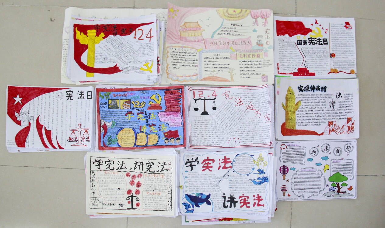 我校充分利用活动契机,举行宪法知识手抄报制作比赛,全校学生积极参加,活动共收到手抄报330份,充分展示了全校师生对宪法的尊崇和理解,经过学生评、专家推、学生投票三轮评选,最后将评出一二三等奖及优秀奖若干名,持续的宣传投票将“12·4”国家宪法日引向深入。