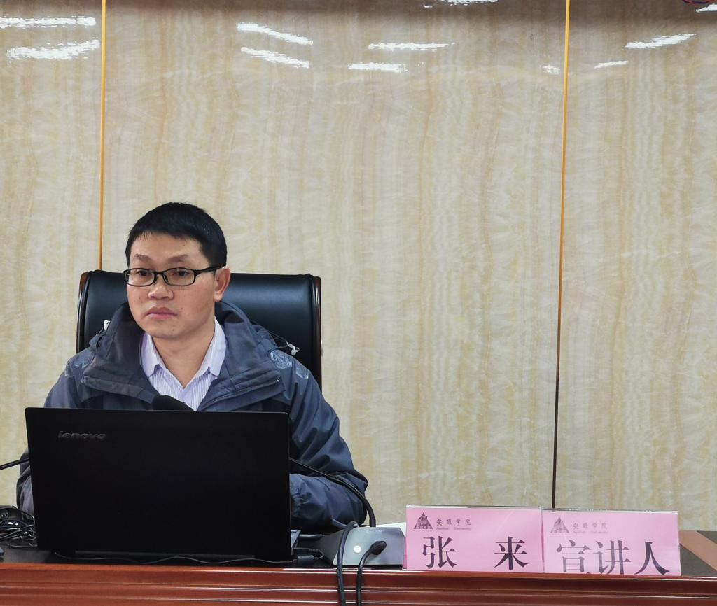 12月23日下午,安顺学院副校长张来为党员干部教师开展了一次详实生动的党的十九届六中全会、省委十二届十次全会和市委四届十二次全会精神专题宣讲。科研处党支部全体党员,教务处、实验管理中心、《安顺学院学报》编辑部、屯堡文化研究中心、教学质量监测与评估中心、省级人文社科基地(贵州省高校乡村振兴研究中心)、旅游与文化产业研究中心(研究生部)全体教职工;农学院、化学化工学院、资源与环境工程学院、旅游学院党员教师认真聆听了宣讲。