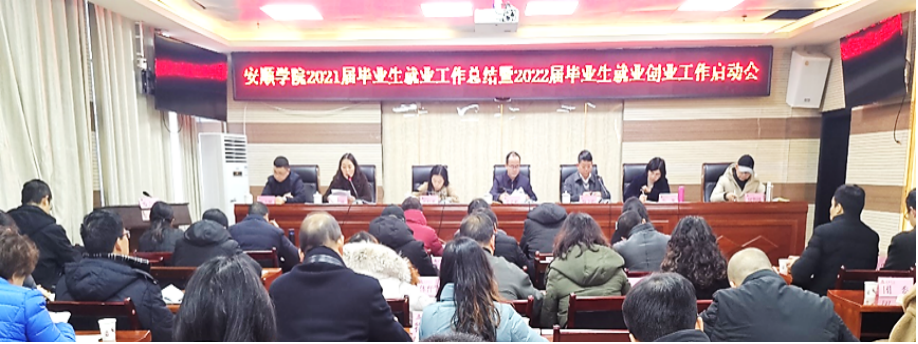 安顺学院2021年就业创业工作总结会暨2022年就业创业启动会于1月6日下午在特教大楼会议室召开。安顺学院党委书记罗荣彬出席会议并讲话,安顺学院党委委员、副校长殷红敏主持会议,安顺学院党委副书记陶文彩、副校长韦英、纪委书记蔡红英、党委委员何超越、杜志明出席会议。相关职能部门主要负责人、各二级学院书记、院长、就业专干、招就处全体人员参加会议。