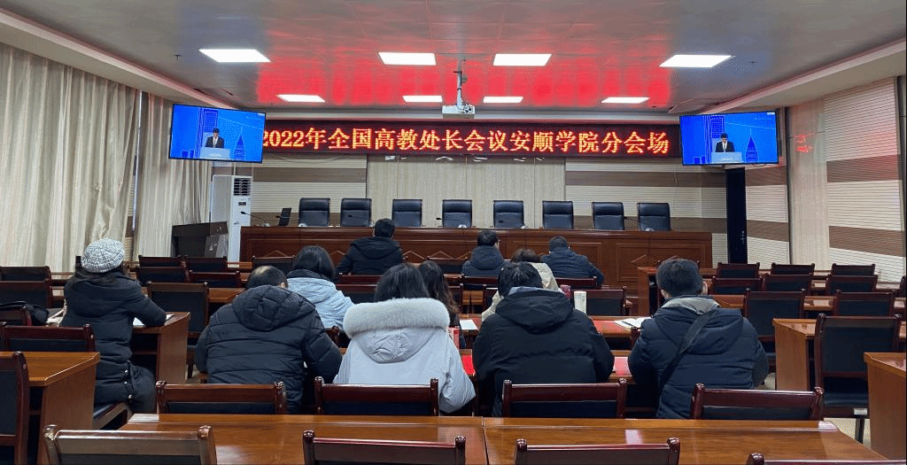 2022年2月25日,教育部高等教育司在重庆召开2022年全国高教处长会议,教育部高教司司长吴岩出席议并作《深化新教改打造新形态提高新质量》的主题报告。安顺学院在特教大楼七楼第三会议室设立分会场,副校长张来和教务处全体人员参加视频会议。