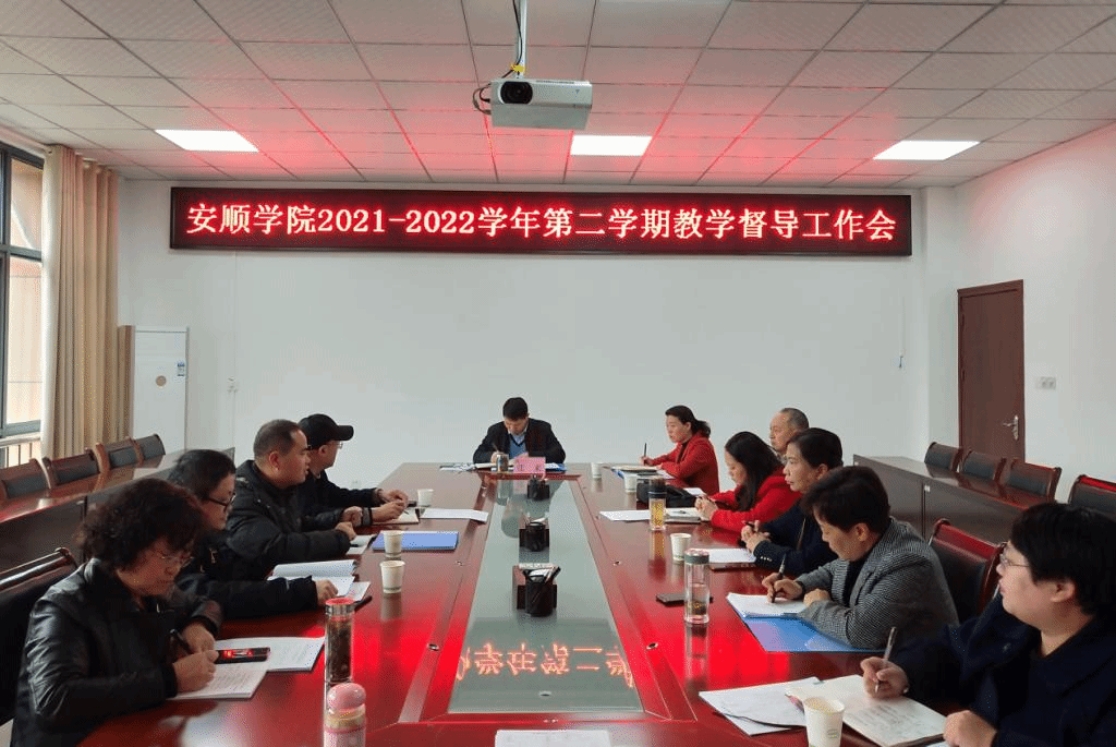 2022年3月10日上午,安顺学院2021-2022学年第二学期教学督导工作会在安道楼第二会议室召开。学校教学督导及教学质量监测与评估中心全体人员参加会议。会议由副校长张来主持。