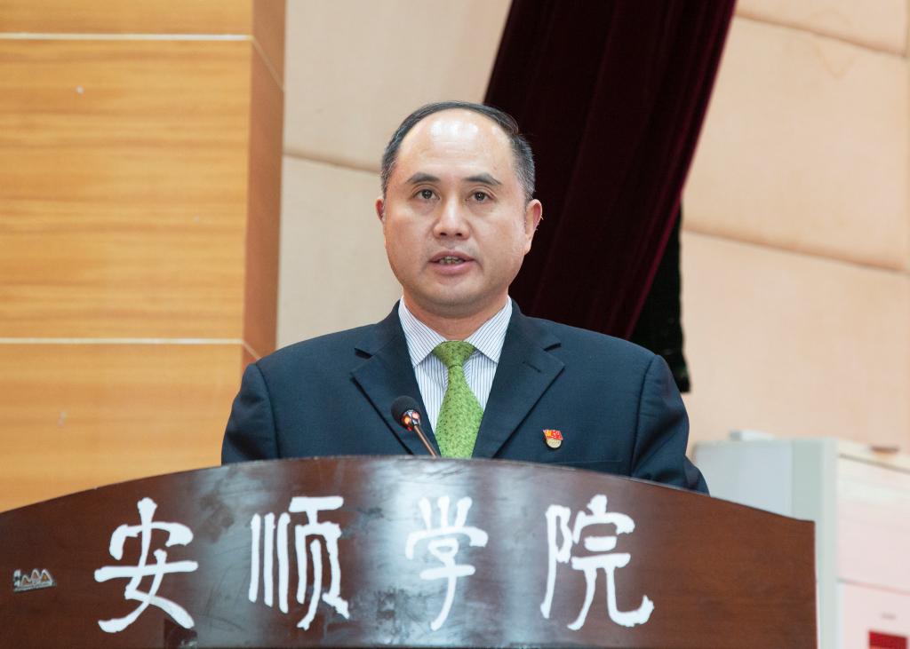 安顺学院校长陈云坤以《把握新机遇 开启新征程 奋力书写安顺学院转型升级新篇章》为题作报告