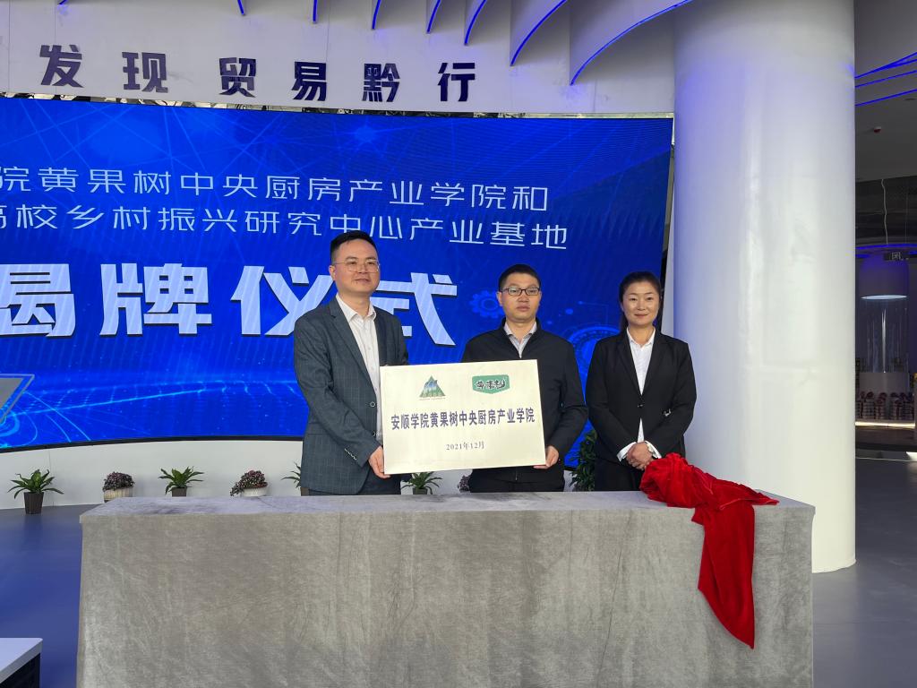 2022年5月17日上午,安顺学院与贵州黄果树中央厨房有限公司在新电商大楼展厅举办合作揭牌仪式,安顺学院副校长张来、安顺学院组织部部长何朝越、化学化工学院、科研处、党委宣传部相关领导出席揭牌仪式。