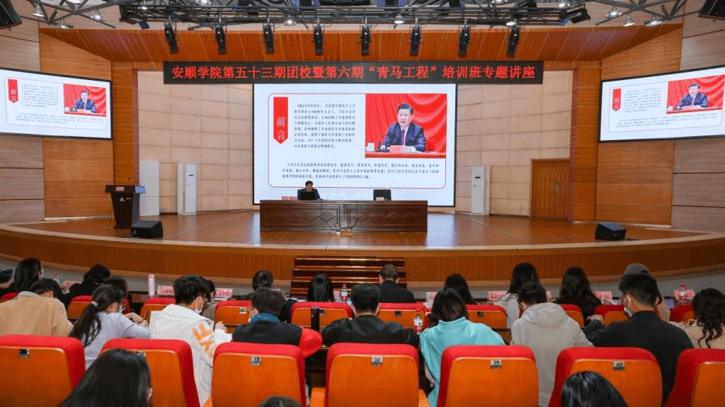 2022年5月24日,安顺学院党委副书记、校长陈云坤为安顺学院第五十三期团校暨第六期“青马工程”培训班作《青春心向党,建功新时代——学习贯彻习近平总书记在庆祝中国共产主义青年团成立100周年大会上的讲话精神》专题讲座,校团委全体人员,团校各学习班班长,第五十三期团校和第六期“青马工程”培训班全体学员参加学习。