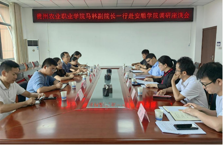 2022年8月15日,贵州农业职业学院副院长马林、科研处处长刘明光一行到安顺学院就科研机构设置、制定建设、团队建设、平台打造、横向合作、成果转化、专利管理、诚信管理、物质管理、经费管理、绩效管理等方面交流座谈。