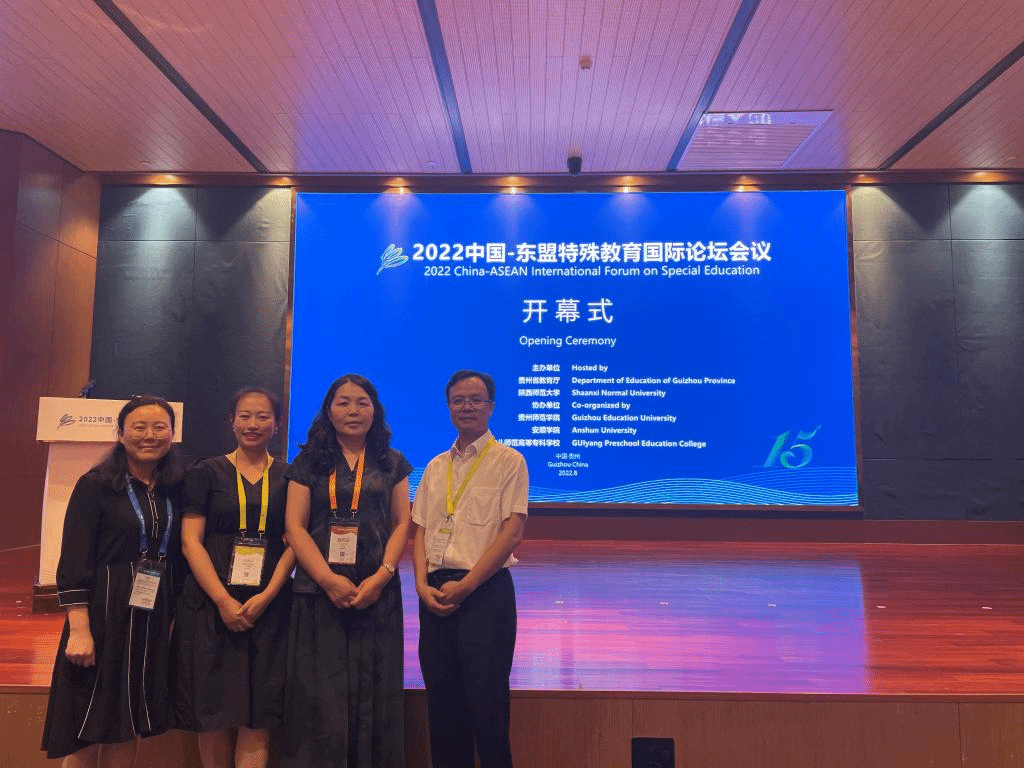 安顺学院党委委员、副校长殷红敏(右二)率领特殊教育学院部分教师代表、学生代表出席2022中国-东盟特殊教育国际论坛会议开幕式及有关活动