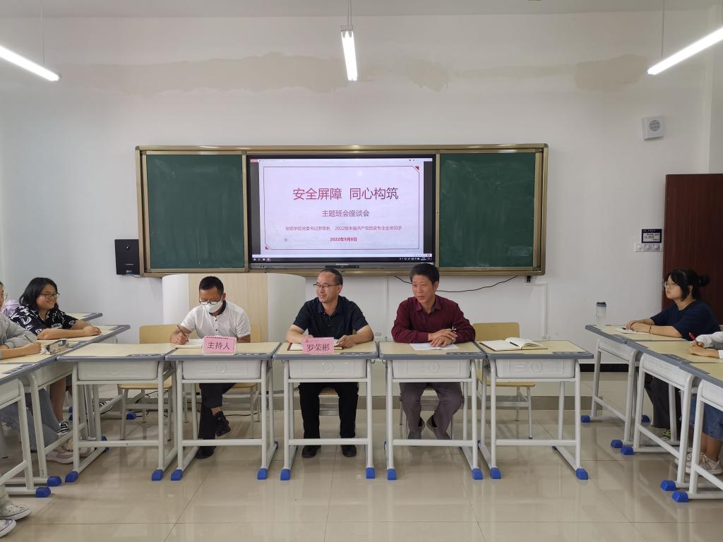 安顺学院党委书记罗荣彬(中)参加2022级中国共产党历史班“安全屏障、同心构筑”主题班会
