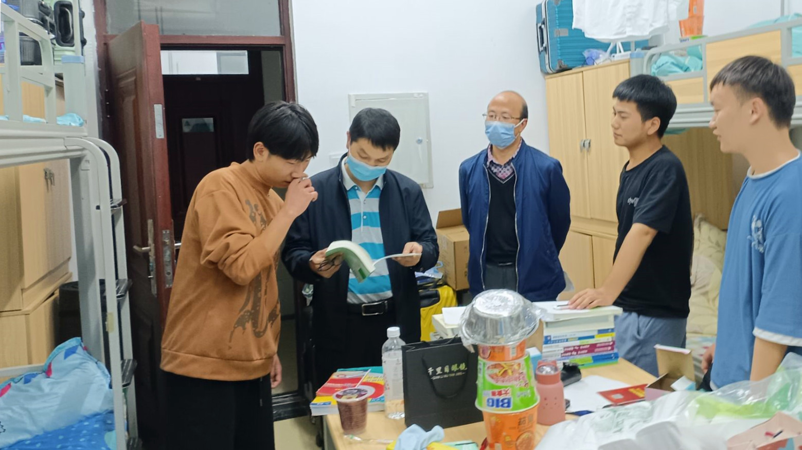近期,省内疫情防控形势严峻,为关爱学生生命安全及心理健康,2022年9月15日、16日,安顺学院副校长张来走访资源与环境工程学院、化学化工学院新生宿舍,深入了解疫情期间同学们的学习、心理和生活状况,同时开展疫情防控期间宿舍防疫工作检查和防疫知识宣传。