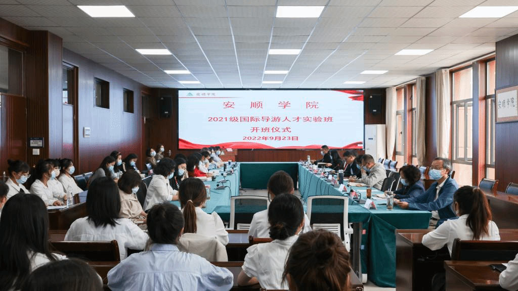 9月23日下午,2021级国际导游人才实验班开班仪式在安顺学院安道楼第一会议室隆重举行,党委副书记、校长陈云坤,副校长张来,党委委员、教务处处长杜志明,宣传部、发规处、团委、人事处(教师工作处)、计财处、学生资助中心、旅游学院负责人,外国语学院全体班子成员;2021级国际导游人才实验班(下文简称“实验班”)的任课教师与学生参加了开班仪式。