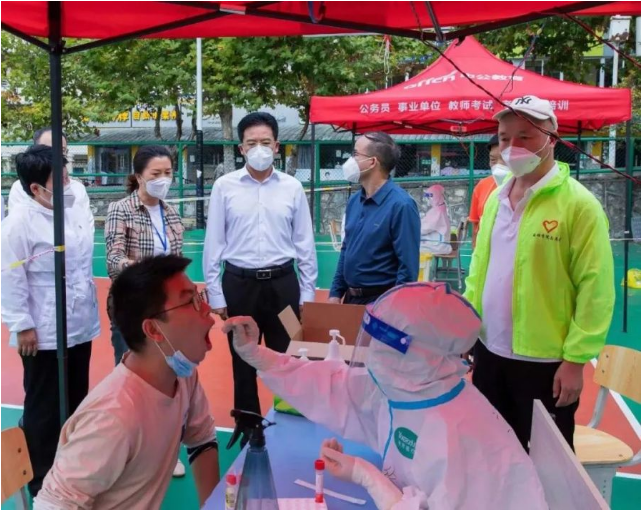 6日中午12时起,安顺经开区开展区域第一轮核酸检测。尹恒斌来到安顺学院、王庄居委会及马厂村等核酸检测采集点,实地查看场地设置、人员配备、服务保障以及采样进展等情况,与现场一线工作人员及前来采集核酸的群众亲切交流,叮嘱大家做好防护,感谢工作人员的辛勤付出和群众的理解支持。他强调,各采样点要科学调度指挥,严格规范核酸检测流程,加强协作配合,不断提高核酸检测质量和效率。要用心用情做好群众工作,引导群众配合支持疫情防控,确保区域核酸检测不落一户、不漏一人,做到应检尽检、应检全检,为尽快打赢疫情防控阻击战奠定坚实基础。
