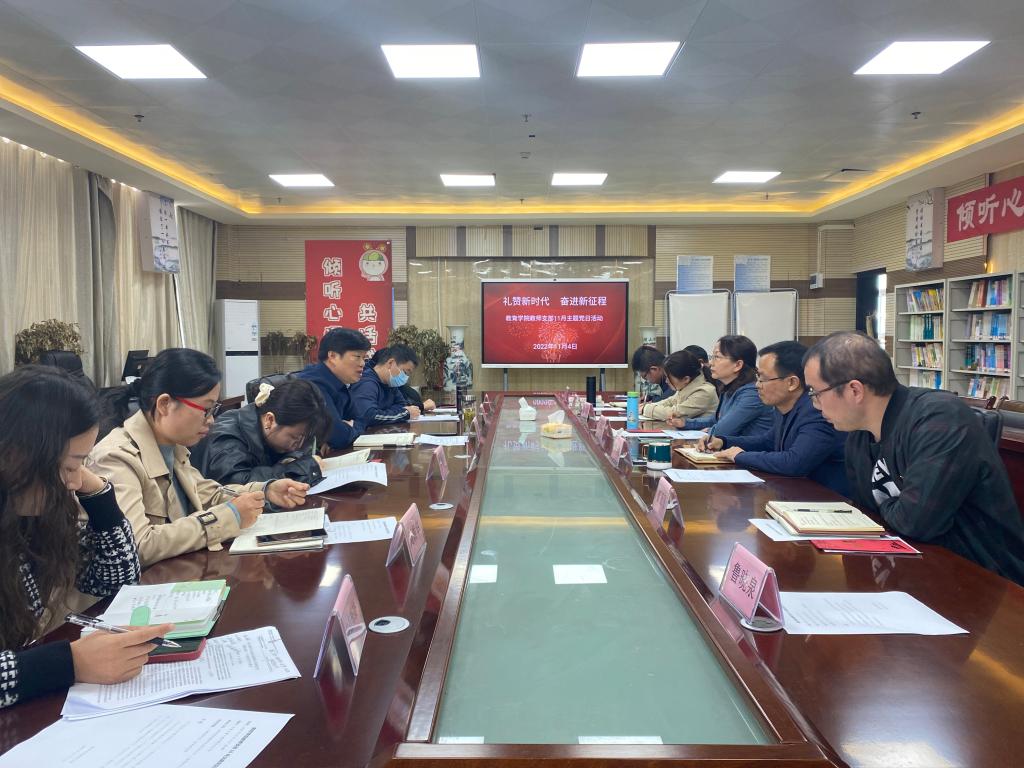 为深入学习贯彻党的二十大精神,11月4日,教育学院教师党支部组织全体党员以“礼赞新时代,奋进新征程”为主题在特教大楼7楼会议室开展主题党日活动,安顺学院党委副书记、校长陈云坤出席。教育学院教师党支部书记王玉主持。