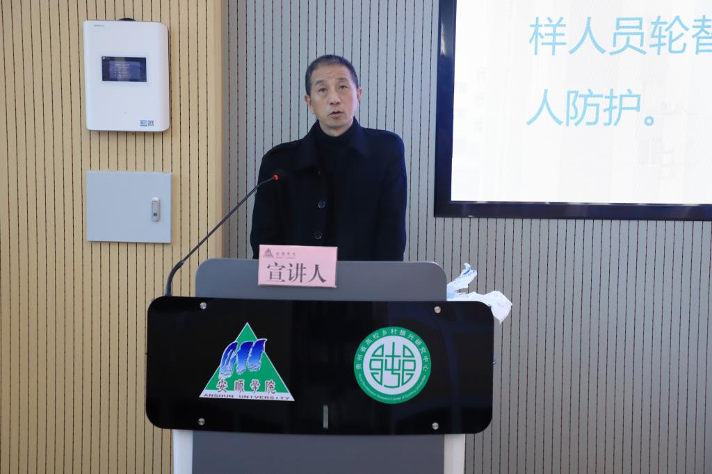 为进一步规范新冠样本采集,2022年11月28日下午,安顺学院召开社会核酸采样人员培训会,安顺学院党委副书记陶文彩出席会议,培训会邀请了安顺市三〇二医院云马分院院长龚元洪为大家讲授核酸采样相关知识,安顺学院疫情防控办公室、教师工作处全体成员及志愿者老师共120余人参加培训。