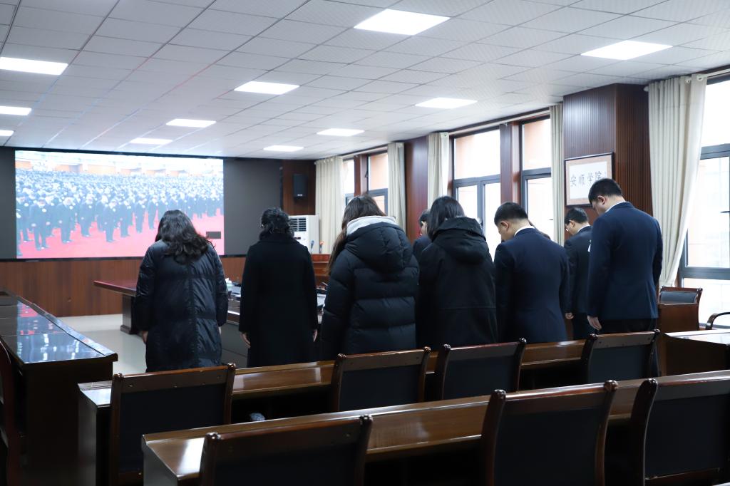 处科级干部、党务干部在学术报告厅沉痛哀悼江泽民同志