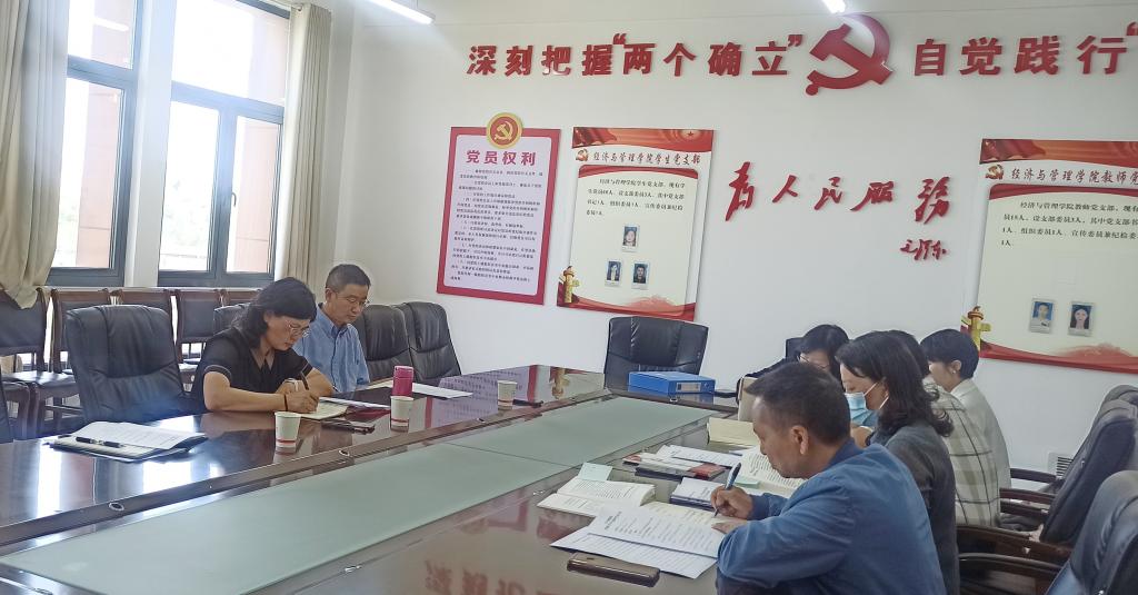 会前,经济与管理学院党委理论学习中心组成员按照要求进行了自学。会上,与会人员集中学习了《习近平谈治国理政》第四卷、《习近平生态文明思想学习纲要》《习近平强军思想学习问答》等有关篇章;习近平总书记在二十届中央政治局第四次集体学习时的讲话精神、在二十届中央全面深化改革委员会第一次会议上的重要讲话精神、在4月28日中共中央政治局会议上的重要讲话精神、给中国农业大学科技小院同学们的回信精神;省委学习贯彻习近平新时代中国特色社会主义思想主题教育读书班暨理论学习中心组集中研讨会会议精神、省委学习贯彻习近平新时代中国特色社会主义思想主题教育读书班交流会会议精神、4月16日省委常委会会议精神、全省巡视巡察工作会议暨十三届省委第二轮巡视动员部署会会议精神等。同时,党委委员认真开展了研讨交流发言,每位同志都结合工作实际发言,准备充分、体会深刻、研讨深入、问题导向突出。