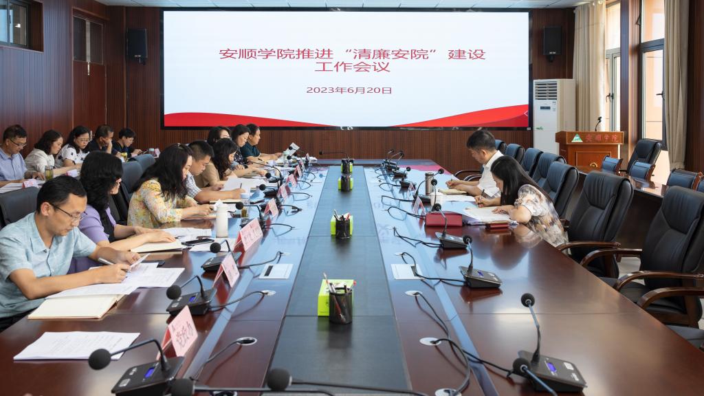 2023年6月20日下午,安顺学院推进“清廉安院”建设工作会议在安道楼五楼第一会议室召开。党委副书记陶文彩,纪委书记、监察专员蔡红英出席会议,基层党委书记和有关部门主要负责同志参会。会议由蔡红英主持。
