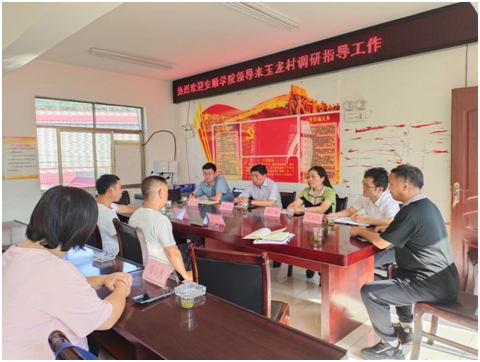 7月12日下午,安顺学院党委副书记、校长陈云坤,党委委员、副校长殷红敏到安顺学院乡村振兴驻村帮扶点清水屯村、玉龙村、孙大关村看望驻村队员,并与村“两委”成员、驻村第一书记和工作队员、党员代表、群众代表,以及安顺学院2023年大学生志愿者暑期“三下乡”社会实践活动师生代表进行座谈,调研指导我校乡村振兴驻村帮扶工作。安顺学院党政办主任马明、校团委书记王旭、科研处副处长张玉涛、校团委副书记刘欢欢等陪同参加调研。