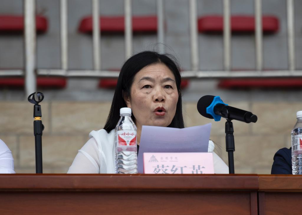 安顺学院党委委员、纪委书记、监察专员蔡红英宣布安顺学院2023级学生军训团干部名单