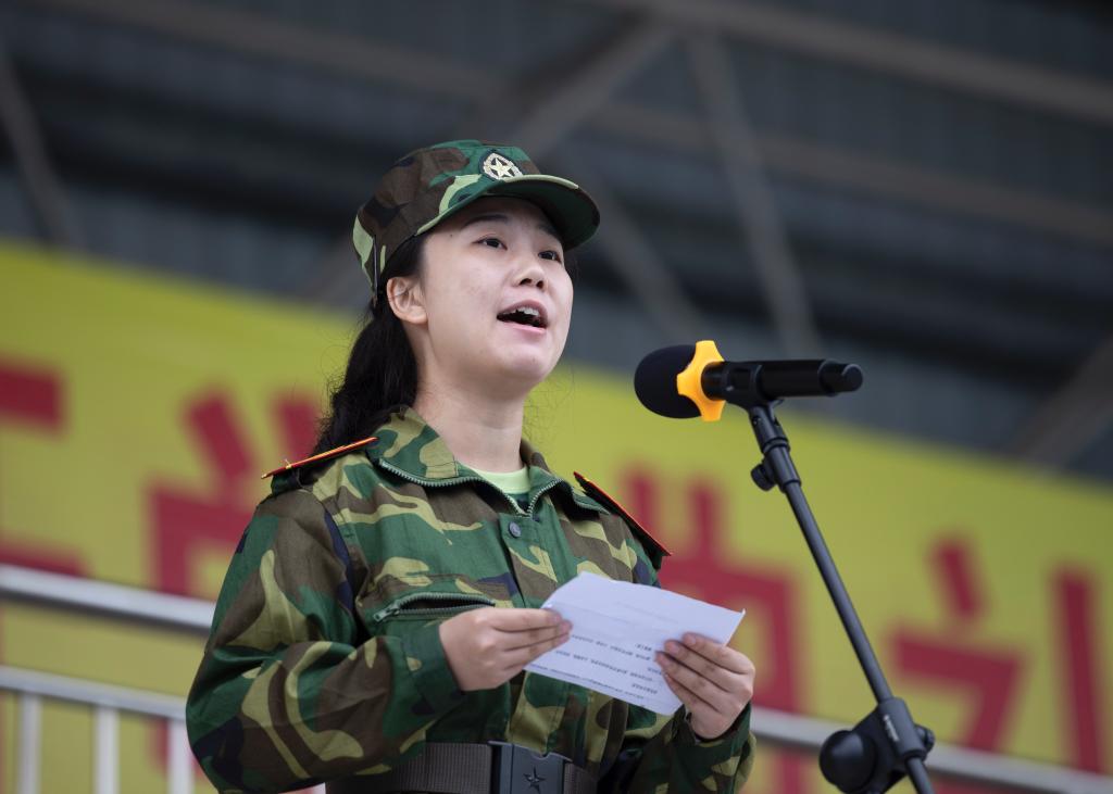 资源与环境工程学院2023级地理科学类专业张钧彦同学代表全体军训学员,郭青奥同志代表执训教官分别表决心,将圆满完成军训各项任务。