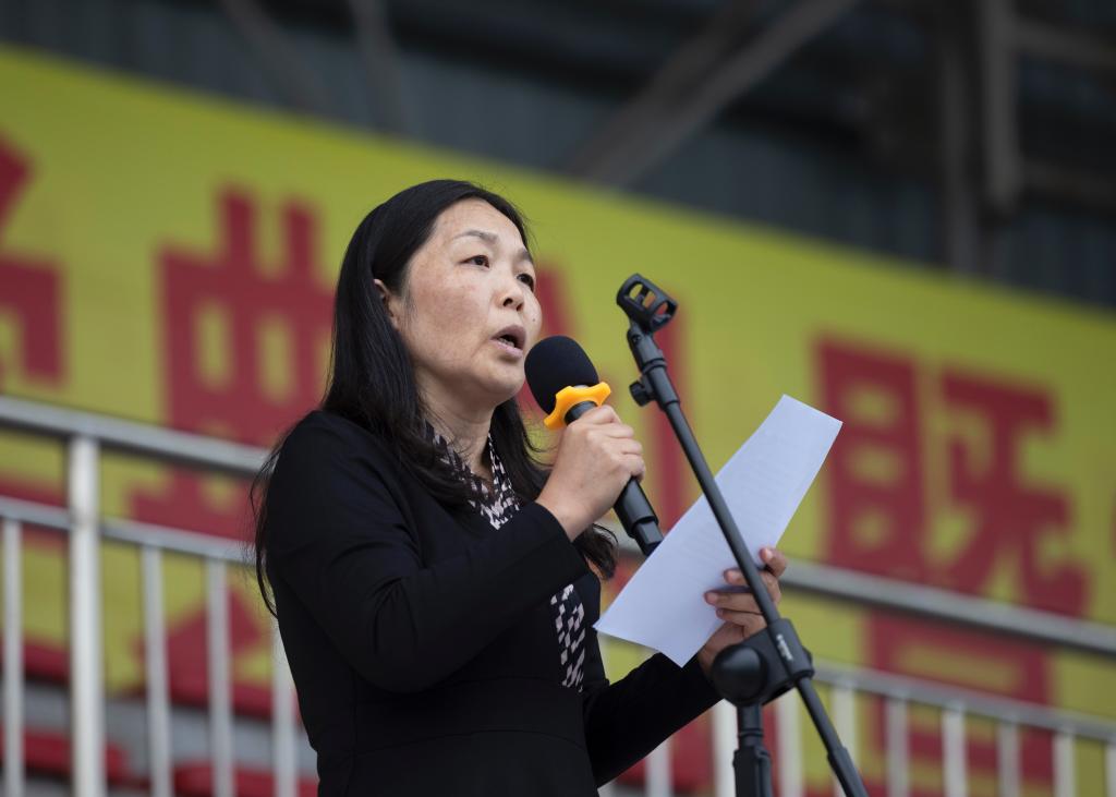 安顺学院党委委员、副校长,军训团团长殷红敏作讲话