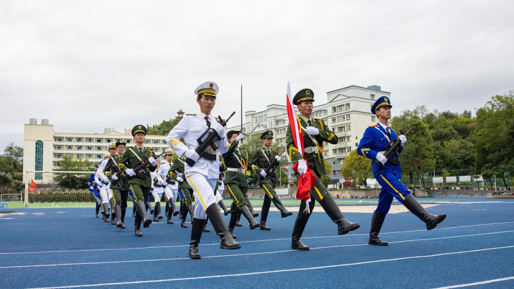 安顺学院党委委员、副校长,军训团团长殷红敏作讲话。殷红敏表示,不苦不是军训,磨练才有收获,希望同学们像军人一样练就铁骨铮铮、硬气朗朗,以良好的精神面貌描绘大学生活的别样精彩,成为堪当民族复兴重任的时代新人,成为德智体美劳全面发展的社会主义建设者与接班人。为高质量完成此次军训,殷红敏提出三点要求,一是厚植家国情怀、增强忧患意识,通过军训进一步树立学习报国之志;二是守纪律听指挥、讲团结同奋斗,通过军训进一步形成奋力前行之势;三是愿吃苦能耐劳、受考验敢拼搏,通过军训进一步培育个人优良作风。