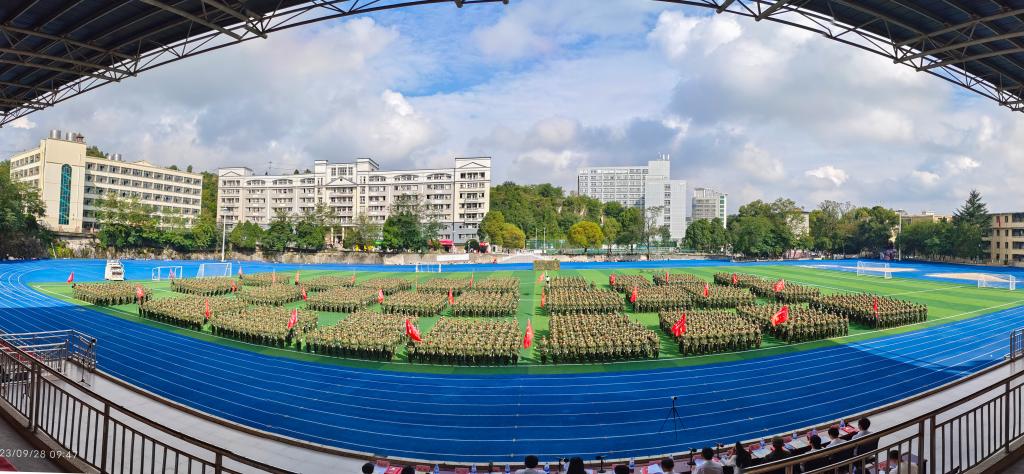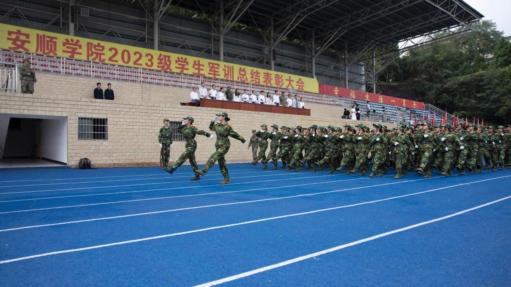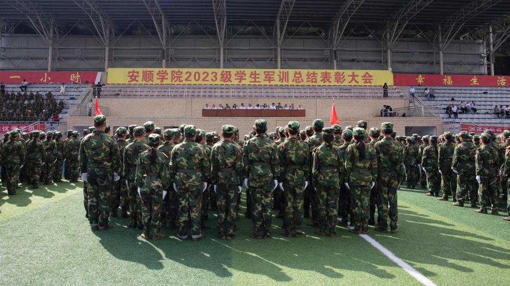 2023年9月28日,安顺学院在学校综合运动场召开2023级学生军训总结表彰大会。安顺学院党委书记罗荣彬,党委副书记、校长陈云坤,党委委员、纪委书记、监察专员蔡红英,党委委员、副校长、2023级学生军训团团长殷红敏,学校党委其他委员,各二级学院党委负责人,2023级学生军训团团部机关主要干部,2023级各班班主任,军训团各连副指导员,以及部分专职辅导员参加大会。大会由安顺学院党委副书记,军训团临时党委书记、政治委员陶文彩主持。