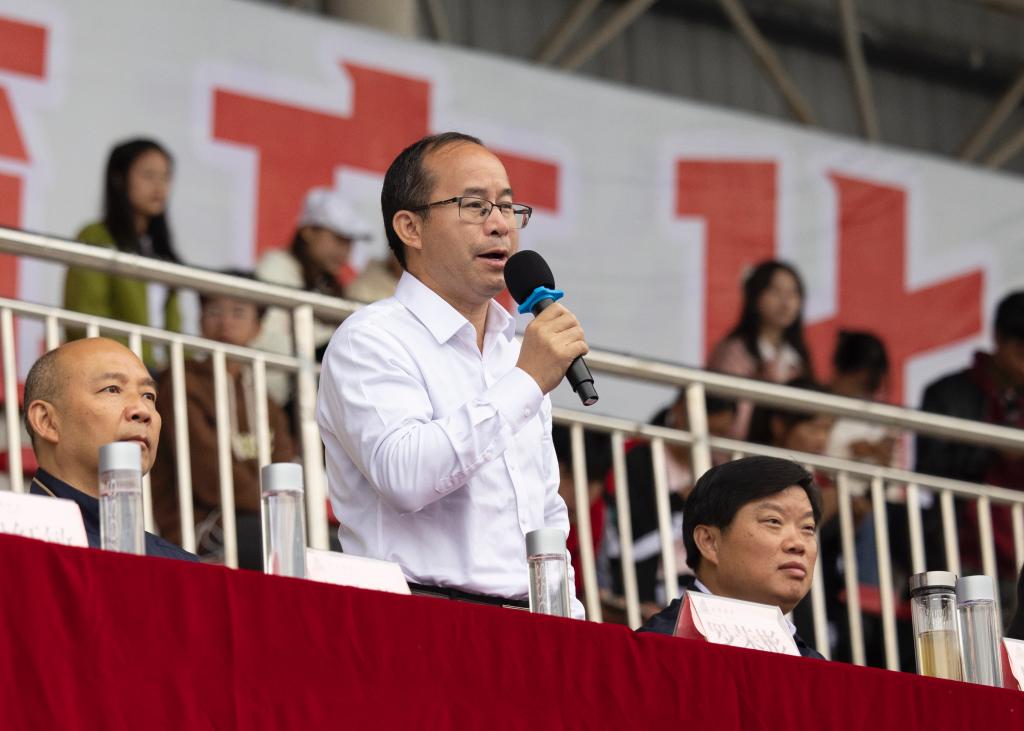 陈云坤在致辞中指出,学校要充分发挥体育育人功能,引导学生在体育锻炼中享受乐趣、增强体质、健全人格、锻炼意志,使同学们真正意识到,要成为有梦想、能创造、身心全面发展的人,不仅应该具有高尚的品德、优异的成绩,还应该具备强健的体魄、竞争意识和合作精神,从而进一步推动我校体育工作的蓬勃开展。体育是力量的角逐,更是智慧的较量和魅力的展示,希望全体裁判员、运动员以最健康的姿态诠释最美丽的青春,踔厉奋进,勇毅前行,艰苦奋斗,迎难而上,团结一致,形成强大合力,努力创造更加灿烂的明天。
