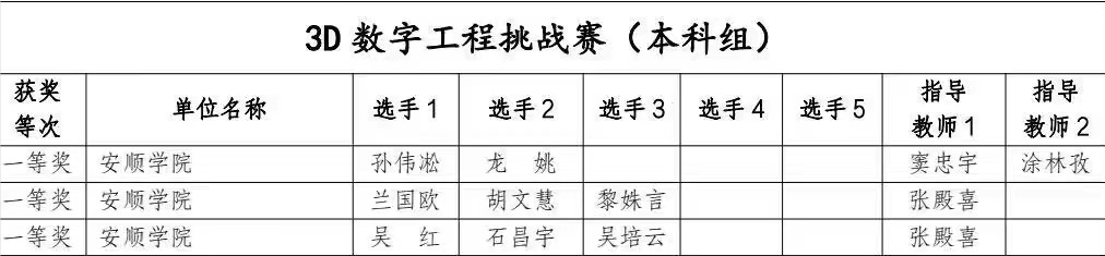 安顺学院3支学生参赛队荣获3D数字工程挑战赛(本科组)三项一等奖