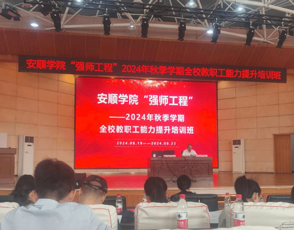 2024年8月19日,安顺学院“强师工程”——2024年秋季学期全校教职工能力提升培训在学术报告厅开班。安顺学院党委书记罗荣彬在讲话中指出,此次培训旨在全面学习贯彻党的二十届三中全会精神及习近平总书记关于教育的重要论述,努力建设一支政治素质过硬、业务能力精湛、育人水平高超的高素质专业化创新型高校教师队伍。