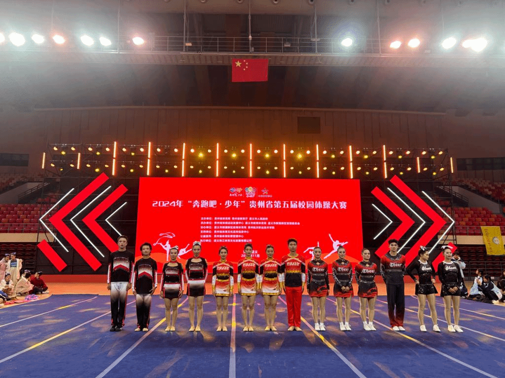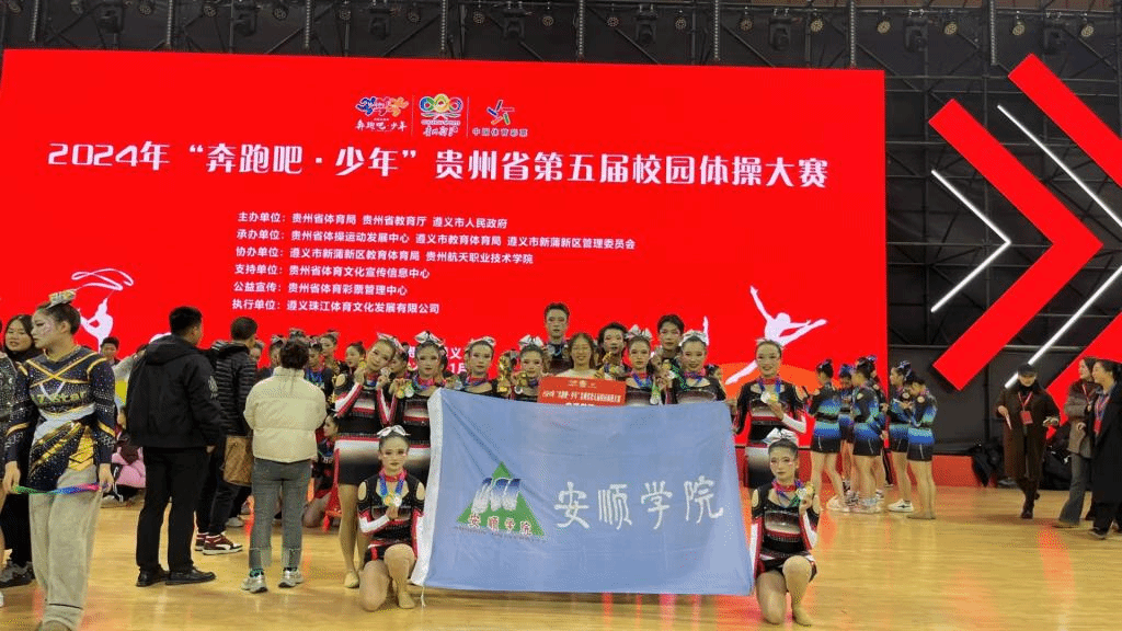 2024年11月21日至25日,2024年“奔跑吧少年”贵州省第五届校园体操大赛在遵义市奥林匹克体育中心举办。来自全省、市(地区)的288支代表队分幼儿组、小学组、初中组、高职高专组、高中中职组、大学组一共有六个组别参加大赛。安顺学院啦啦操队在大赛中取得佳绩。