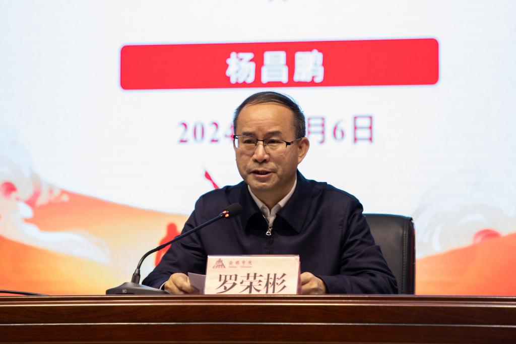 12月6日下午,安顺市委书记杨昌鹏在安顺学院学术报告厅以“立报国强国大志向,做挺膺担当奋斗者——在谱写中国式现代化安顺篇章中贡献青春力量”为主题,为安顺学院师生讲授思想政治理论课。安顺学院党委书记罗荣彬主持。