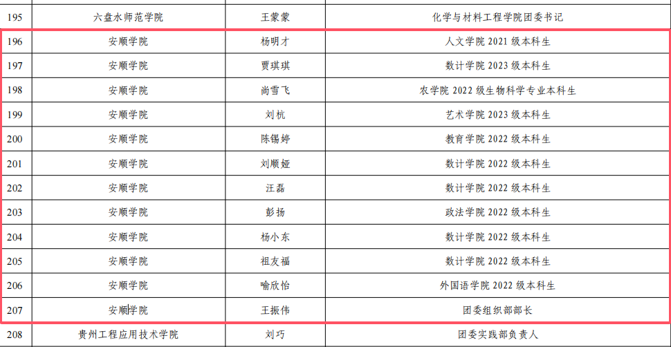 近日,中共贵州省委宣传部等部门联合印发《关于公布2024年贵州省大学生暑期文化科技卫生“三下乡”社会实践活动评审结果的通报》,安顺学院青年积极投身实践,表现突出,荣获优秀实践单位4个、优秀实践团队12个、优秀个人12名。