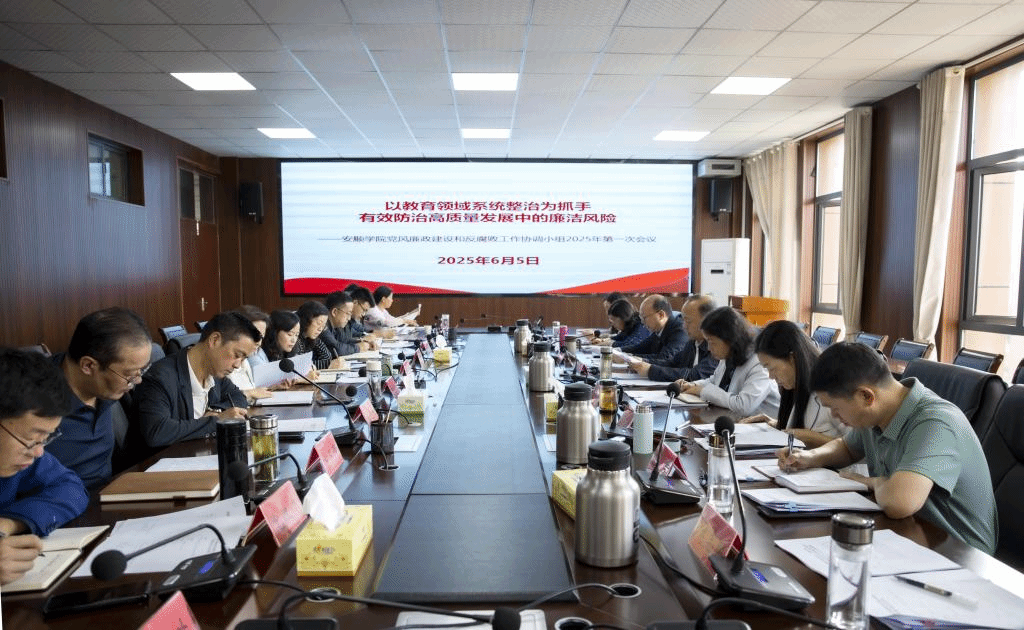 2025年6月5日上午,安顺学院党风廉政建设和反腐败工作协调小组2025年第一次会议在安道楼505会议室召开,会议以“以教育领域系统整治为抓手,有效防治高质量发展中的廉洁风险”为主题。安顺学院党委书记程绪权及全体在家校领导出席会议,学校党风廉政建设和反腐败工作协调小组成员单位参会,教务处、教师工作处、后勤处、基建处、招就处、科研处、学工部主要负责人列席。会议由安顺学院党委副书记李琳主持。