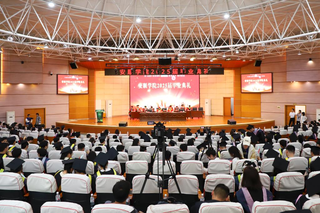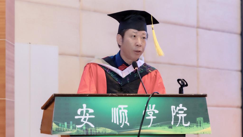 白驹过隙,光阴如梭。2025年6月19日上午,安顺学院2025届毕业典礼在庄严而热烈的氛围中于学校学术报告厅隆重举行。安顺学院校长、校学位评定委员会主任曾丽教授出席并致辞。学校党政领导班子成员、校学士学位评定委员会委员、教师代表、管理服务人员代表、毕业生家长亲友代表,我校2025届毕业生代表参加典礼,共同见证这一青春盛典。安顺学院党委副书记李琳主持毕业典礼。
