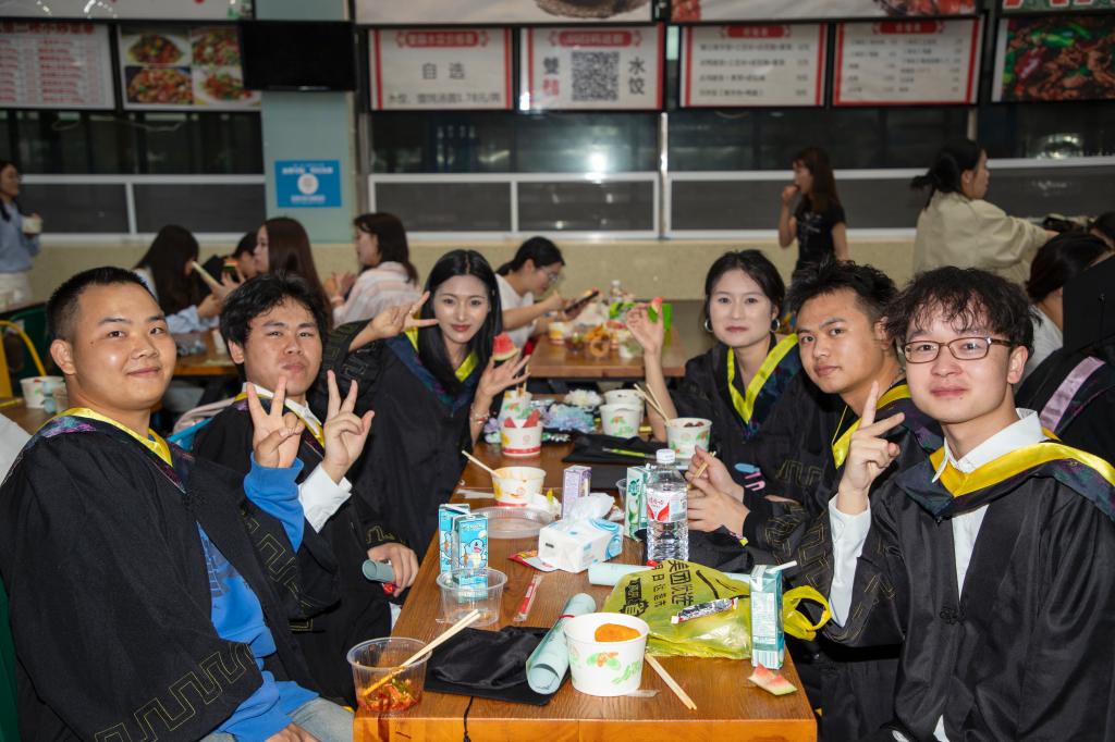 典礼结束后,毕业生们前往思源居篮球场参加了由学校精心准备的冷餐会。菜品以冷食为主,种类丰富,色味俱全,还有各种饮品供毕业生们选择。