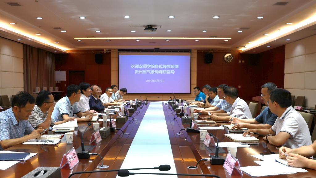 随后,安顺学院一行前往贵州省气象局调研座谈。省气象局党组书记、局长李昌兴,党组成员、副局长杨林等领导参加座谈会。座谈会上,双方围绕共建气象实验室、加强人才培养等事宜进行了深入沟通。杨林介绍了贵州省气象局在气象服务、科研创新等方面的工作情况,强调了气象与各行业融合发展的重要性。李昌兴表示,省气象局愿意与安顺学院加强合作,共同开展气象相关领域的研究和应用,为地方经济社会发展提供更有力的气象支撑。程绪权介绍了安顺学院的学科专业建设、办学规模、科研成果等情况,希望借助省气象局的资源和平台,共建实验室,不断提升学校人才培养质量和科研水平。石培华介绍了共建实验室的具体方案。会上,双方还就实验室的建设目标、研究方向、运行机制等进行了讨论,明确了下一步合作的重点和方向。